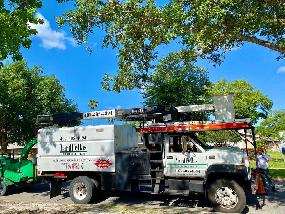 This project showcases the various tasks performed by our tree service crew including transporting cut tree logs, stump grinding, trimming extremely tall trees.